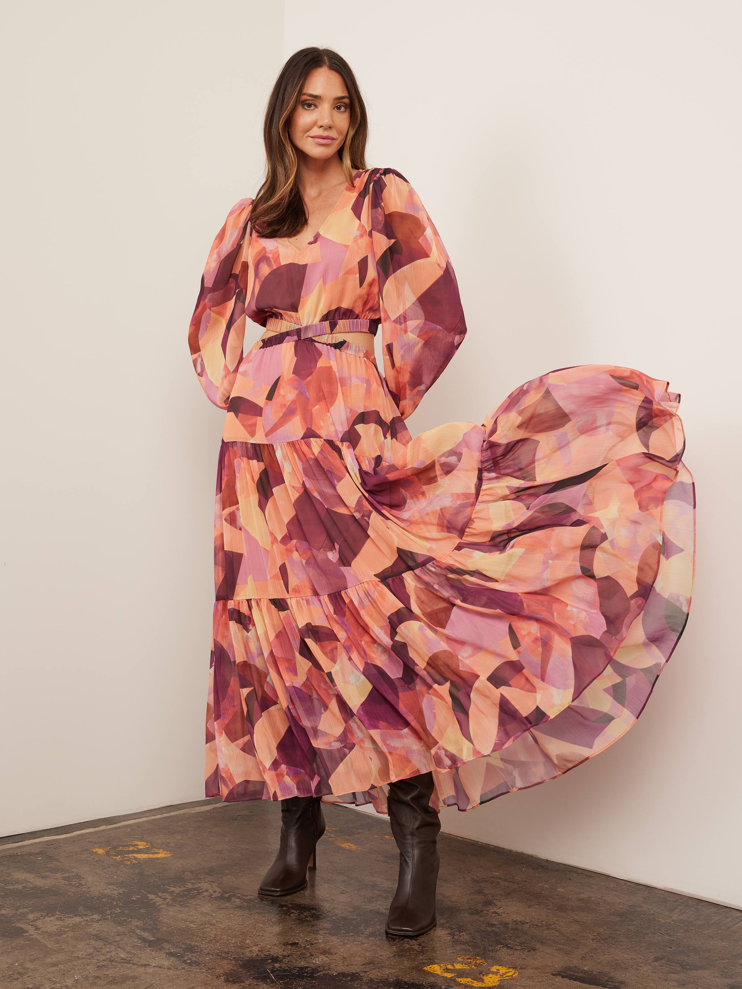Harlow Cut Out Tiered Maxi Dress Autumn Abstract Portmans Online
